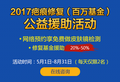 【援助形式】网络预约可享免费做皮肤镜检测,并获得20%—50%疤痕修复援助金。